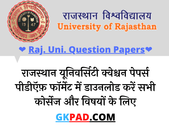 Rajasthan University Question Papers 2022 PDF Download