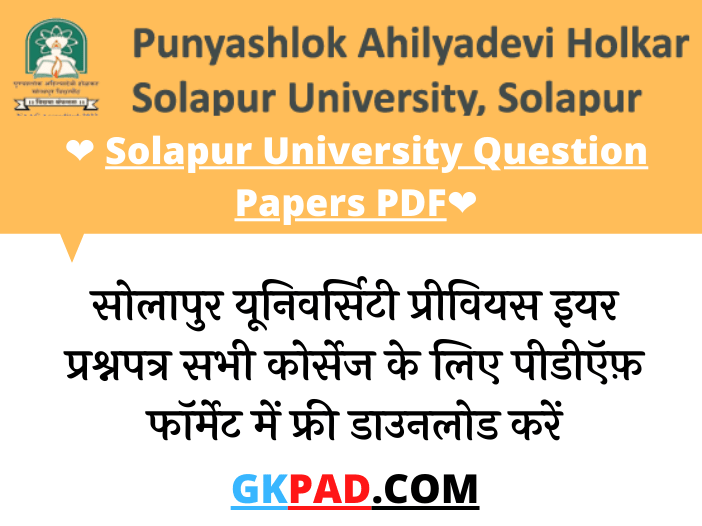 Solapur University Previous Year Question Papers PDF